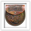Celtic Knotwork Dog Sporran with Celtic knotwork Dog pattern on flap and front. Sporran closes with a snap button fastener. (Straps and chains are included).
